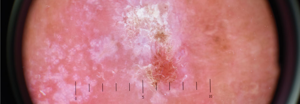So würde beispielsweise bei einer älteren Patientin mit unscharf begrenzter nicht-hyperkeratotischer, eher erythomatöser aktinischer Keratose größerer Fläche die Läsionskontrolle als Therapieziel im Vordergrund stehen.Hingegen bei jemand Jüngerem mit einer…