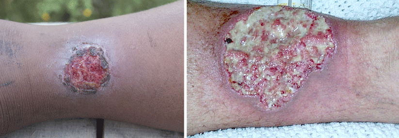 An den Händen und der Stirn des 68-Jährigen haben sich Rhagaden und Ulzera gebildet, an der Stirn zudem tiefe Wülste.