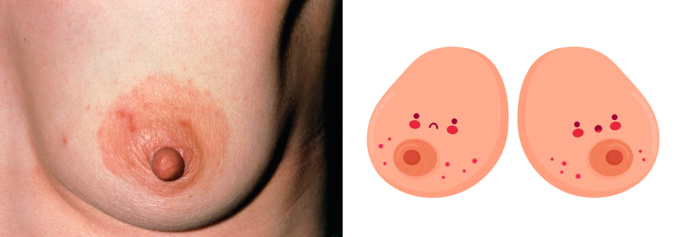 - Bei der IgE-vermittelten Soforttypreaktion treten innerhalb von 2 Stunden nicht-ekzematöse Hautsymptome – Urtikaria, Angioödem, Flush, Juckreiz – auf. Möglich sind auch anaphylaktische Reaktionen, die sich gastrointestinal, respiratorisch oder kardiovaskulär manifestieren können. Manche Kinder entwickeln 6–10 Stunden nach der Sofortreaktion noch ein passageres morbilliformes Exanthem.