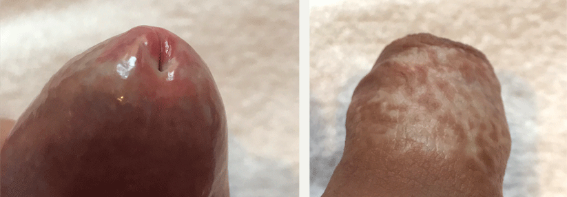 - sekundäre Phimose (Vorhaut ließ sich vorher problemlos zurückziehen, nun treten dabei Schmerzen auf)
