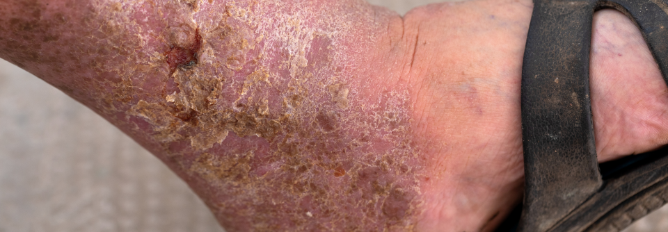 Die Hautgeschwüre entwickeln sich meist am Fußrücken, am Unterschenkel oder in der Malleolarregion.