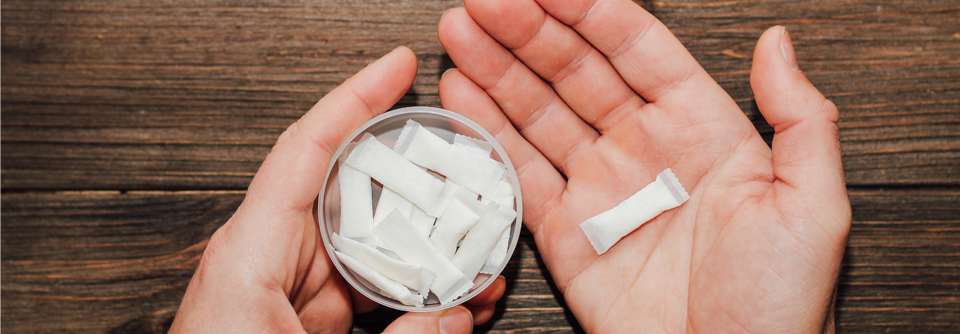 Snus ist ein pulverartiges Tabakerzeugnis, das gekaut wird und auf diese Weise oft längere Zeit im Mund bleibt. Es enthält neben Nikotin auch polyaromatische Kohlenwasserstoffe, tabakspezifische Nitrosamine, Pestizide und Schwermetalle.