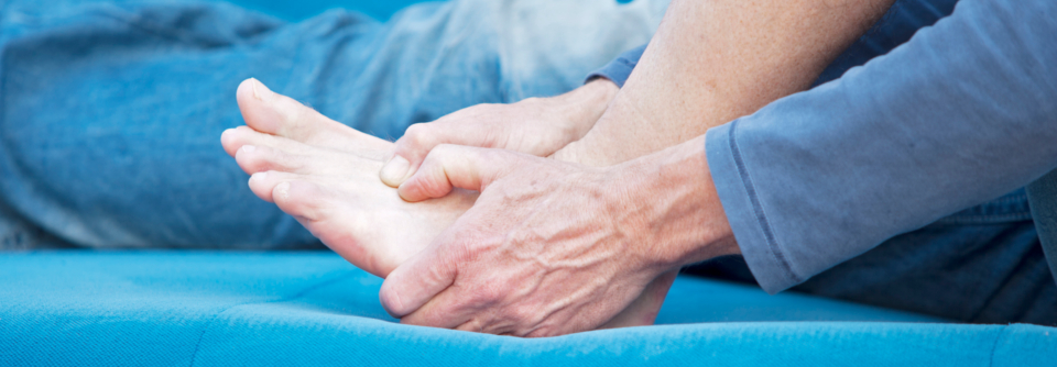 Gichttophi an den Füssen eines 60-jährigen Patienten.