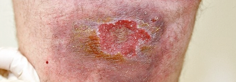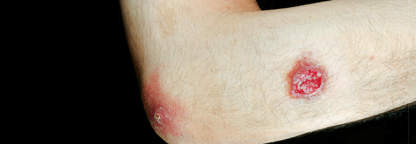 Nach dem Stich einer Sandmücke hat sich eine kutane Leishmaniasis-Läsion gebildet.