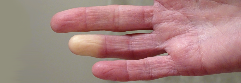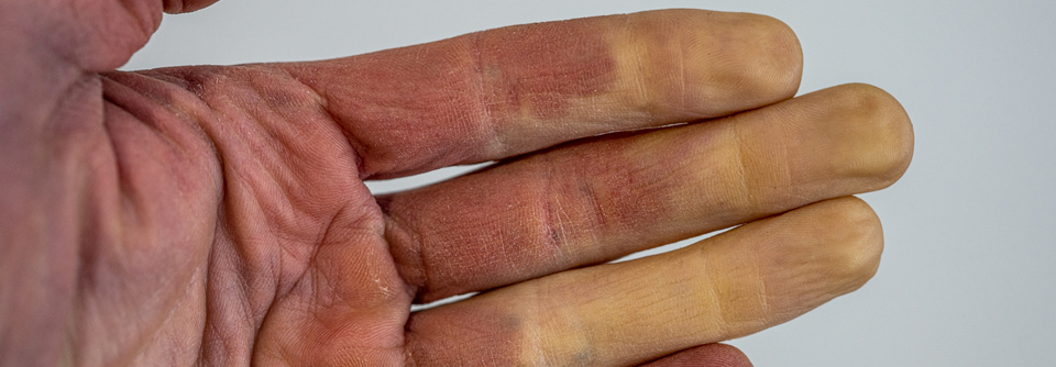 Erst weiß, dann blau, dann rot: Die phasenweise Verfärbungen der Finger nennt sich Trikolore-Phänomen.