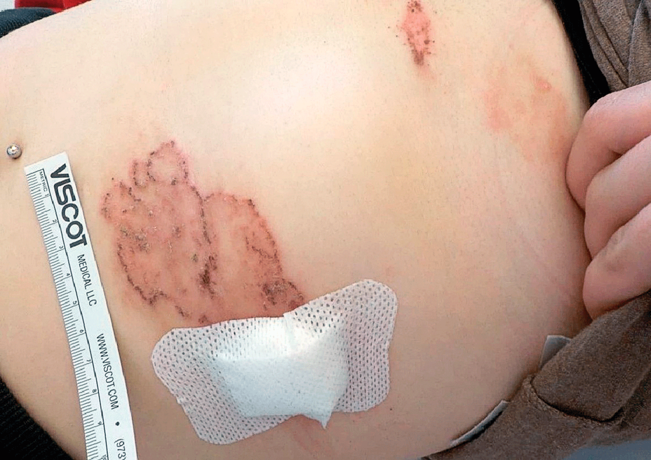 Seit neun Wochen klagte die Patientin über einen vom Oberbauch bis in die Extremitäten reichenden, stark juckenden Hautschlag. Der niedergelassene Dermatologe hatte erfolglos mit verschiedenen topischen Externa behandelt und schließlich zum Ausschluss einer linearen IgA-Dermatose an Spezialisten des Bundeswehrzentralkrankenhauses Koblenz überwiesen. Klinisch imponierten erythematöse, teilweise pustulöse Plaques mit krustösen Begrenzungen sowie gruppiert stehende ekzemartige Hautveränderungen. Als Vorerkrankungen gab die Patientin ein Kraniopharyngeom mit Chiasma-Kompression an. Die Biopsat-Histopathologie ergab Zeichen einer bullösen und pustulösen Dermatitis mit Kokken-Besiedlung.