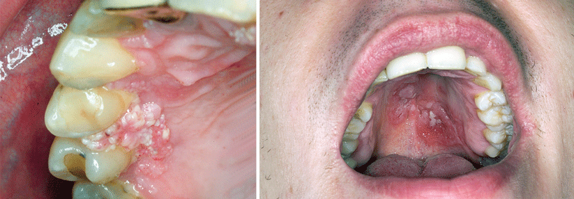 Drei Wochen später zeigten sich an Schamhügel und gesamtem Unterbauch erythemtöse Plaques und Infiltrationen, begleitet von inguinalen Lymphknotenschwellungen. Es ließen sich auch mehrere Fistelgänge erkennen und es bestand eine erhebliche Druckschmerzhaftigkeit. Der gesamte Intimbereich war rasiert, auch vor Beginn der Hautprobleme.