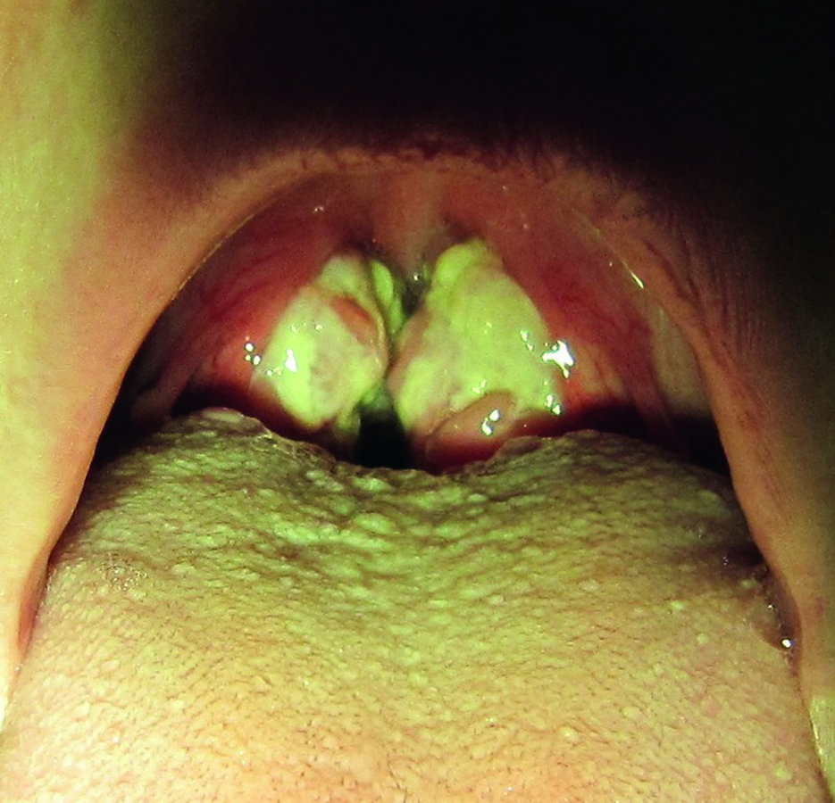 Eine RSV-Infektion lässt sich an der typischen perihilären Zeichnungsvermehrung (Pfeile) erkennen (links). Hyperplastische Tonsillen mit Fibrinbelägen: Sieht der Rachen so aus, liegt eine EBV-Infektion nahe (rechts).