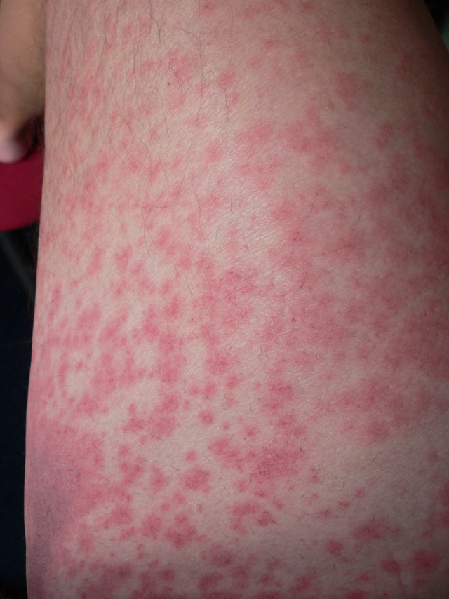 Urtikaria oder auch Nesselsucht ist eine Hauterkrankung, die mit ödematösen Effloreszenzen (Quaddeln) und möglicherweise auch Angioödemen einhergeht.