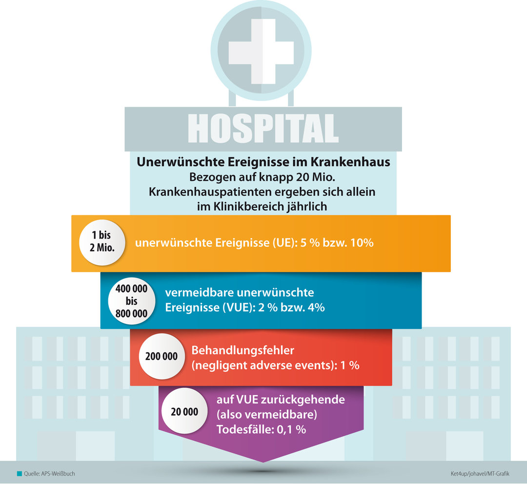OP-Checklisten, die Aktion Saubere Hände, Fehlermeldesysteme oder ein verpflichtendes Qualitätsmanagement zeigen, dass Patientensicherheit inzwischen in vielen Gesundheitseinrichtungen, vor allem in Krankenhäusern, thematisiert und umgesetzt wird. Ausreichend ist das aber längst nicht. Denn es gibt jährlich geschätzt noch immer bis zu 800 000 vermeidbare unerwünschte Ereignisse zum Nachteil der Patienten, darunter 200 000 durch Behandlungsfehler ausgelöste Ereignisse und 20 000 Todesfälle, so Weißbuch-Autor Professor Dr. Matthias Schrappe, Universität Köln. Nach fast 15 Jahren Bestehen des Aktionsbündnisses Patientensicherheit (APS) erscheinen deshalb dem Arzt und einstigen APS-Mitgründer „ein neues Nachdenken über die zugrunde liegenden Konzepte und den Einsatz von modernen Verfahren für anhaltende Verbesserungen“ erforderlich.