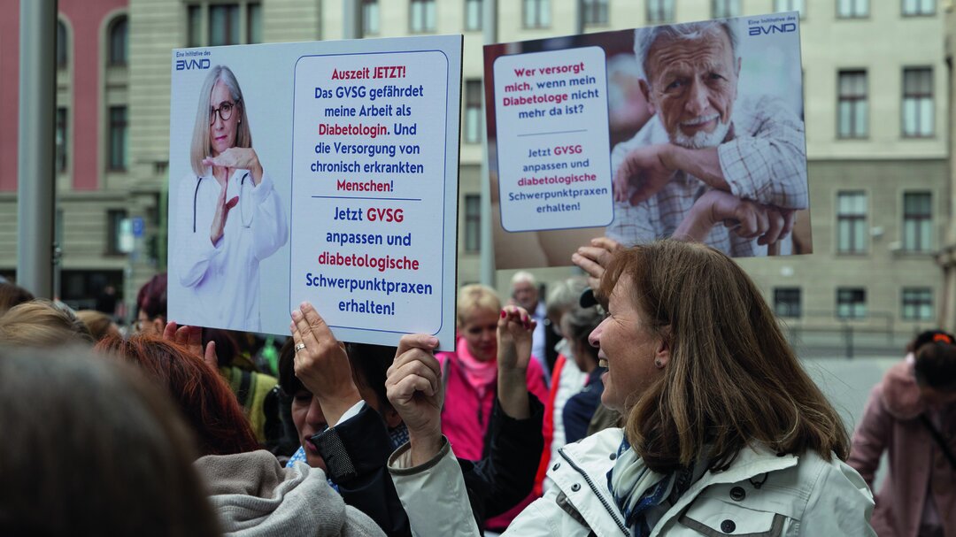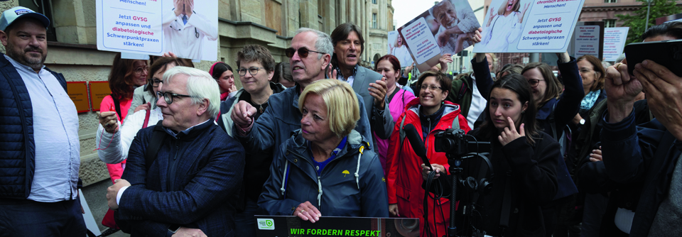Was genau möchten der BVND und seine Partner erreichen? „Wir sind heute hier, um auf die Bedürfnisse von chronisch Erkrankten und uns Ärztinnen und Ärzten, die diese versorgen, aufmerksam zu machen. Der derzeitige Entwurf des GVSG bedroht die Existenz vieler diabetologischer Schwerpunktpraxen und damit ganz unmittelbar die künftige Versorgung von chronisch und schwer an Diabetes erkrankten Menschen“, so Dr. Iris Dötsch, stellvertretende BVND-Vorsitzende und niedergelassene Diabetologin aus Berlin. „Die Problematik hat man inzwischen auch im BMG erkannt. Wir fordern nun die Politik auf, das Gesetz im parlamentarischen Verfahren entsprechend nachzubessern. Entsprechende konkrete Vorschläge dafür liegen auf dem Tisch!“
