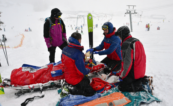 Umgehend erfolgt die Gabe hochdosierter Schmerzmittel, die Schienung und Abdeckung des verletzten Beines sowie die Umlagerung des Patienten auf eine Gebirgstrage. Auf dieser wird er mittels eines Dyneema-Seilsatzes abgelassen. Währenddessen erfolgt eine dauerhafte klinische Überwachung durch den Bergwacht-Notarzt, der bei diesem Einsatz auf apparatives Monitoring verzichten muss.