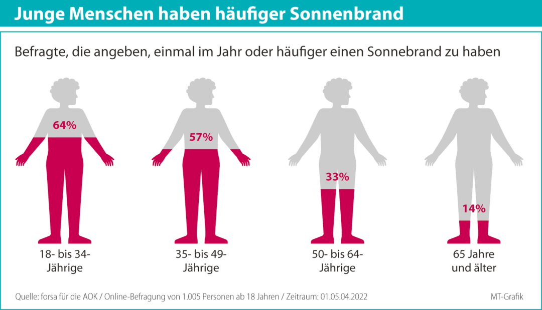 Zwei Drittel der 18- bis 34-Jährigen haben mindestens einmal im Jahr Sonnenbrand.