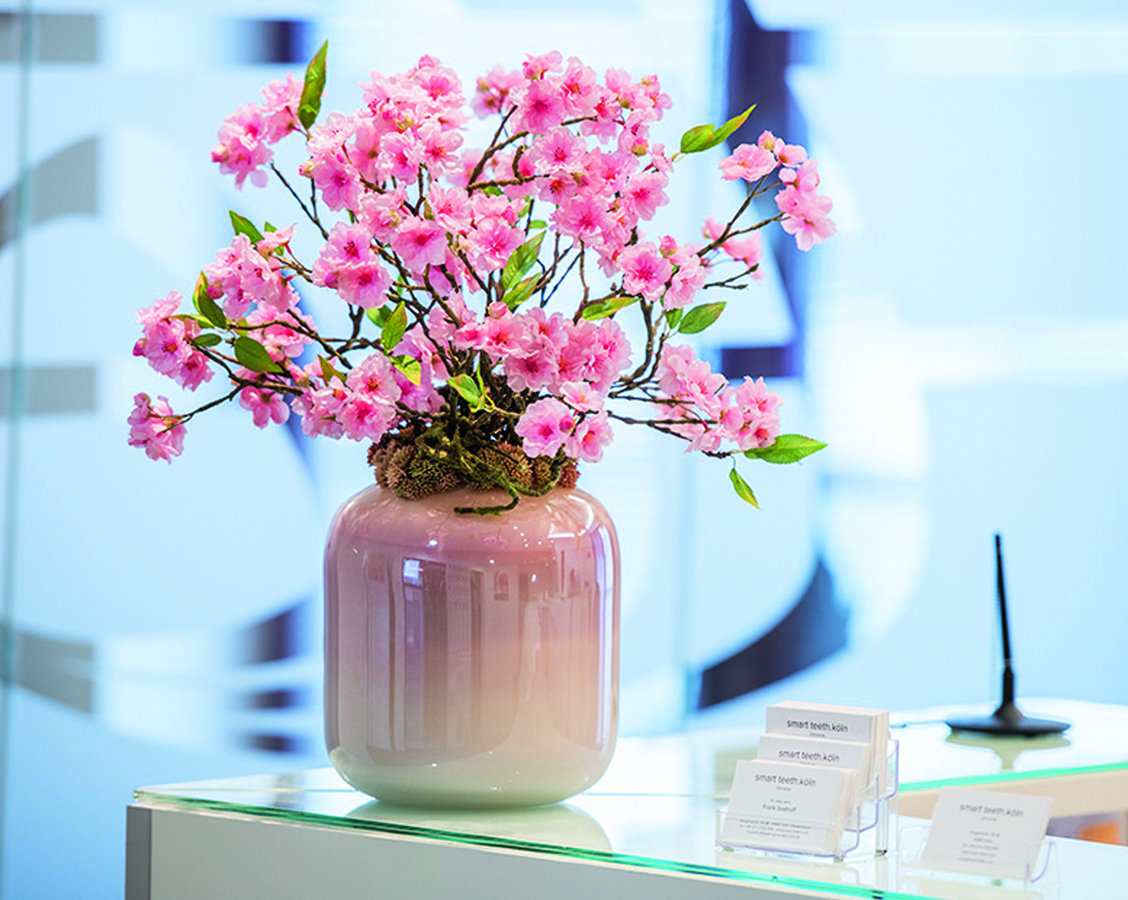 Dabei ist jede Farbe, Form und auch Stilrichtung der Blumen und Gestecke vom Kunden frei wählbar. „Wir richten uns beispielsweise bei Ärzten stets nach dem vorhandenen Design der Praxis“, sagt Rinsche. So besteht eine ihrer Kernzielgruppen sowohl aus modernen Zahnarztpraxen und Zahnkliniken als auch aus Landarztpraxen.